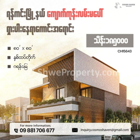Property Name : ရန်ကင်းမြို့နယ်ကျောက်ကုန်းလမ်းမပေါ်နေရာကောင်းလုံးချင်းအရောင်း/Landed House for Sales Yankin Township in Yangon/09892600050,09892600060
