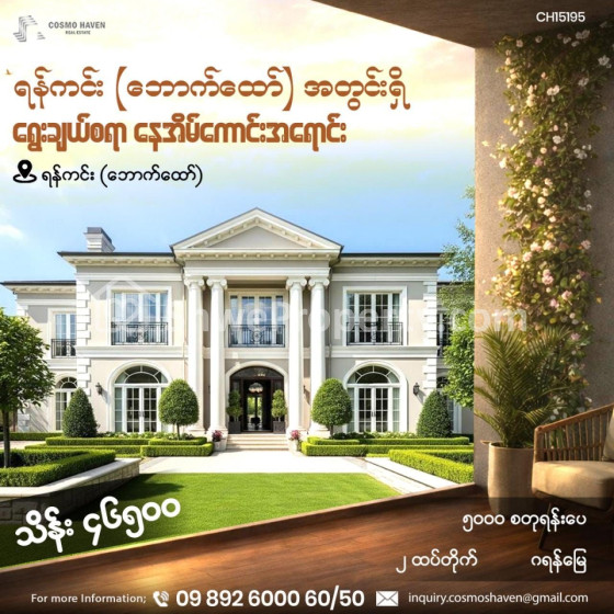 Property Name : ရန်ကင်း (ဘောက်ထော်) အတွင်းရှိ ရွေးချယ်စရာ လုံးချင်းအိမ်အရောင်း/Landed House For Sales Yankin Township In Yangon/09892600050,09892600060