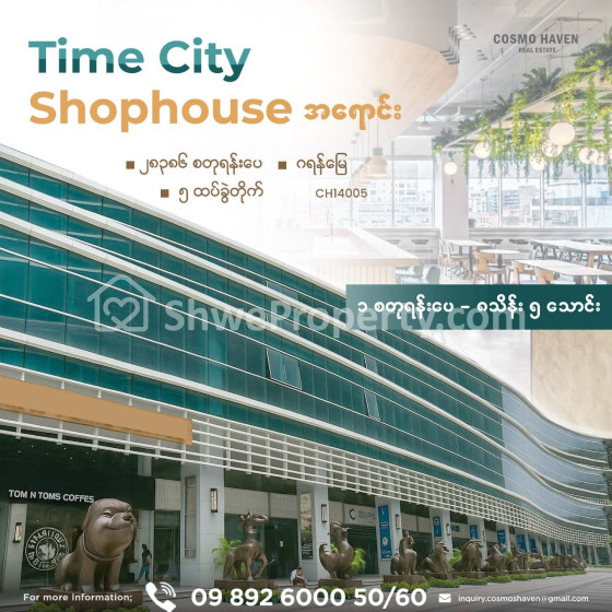 Brand image ကိုအထင်းသာပေါ်လွှင်စေမယ့်ကမာရွတ်မြို့နယ် Time City ရှိ Shophouse အရောင်း/Shop House for Sales Kamayut Township in Yangon