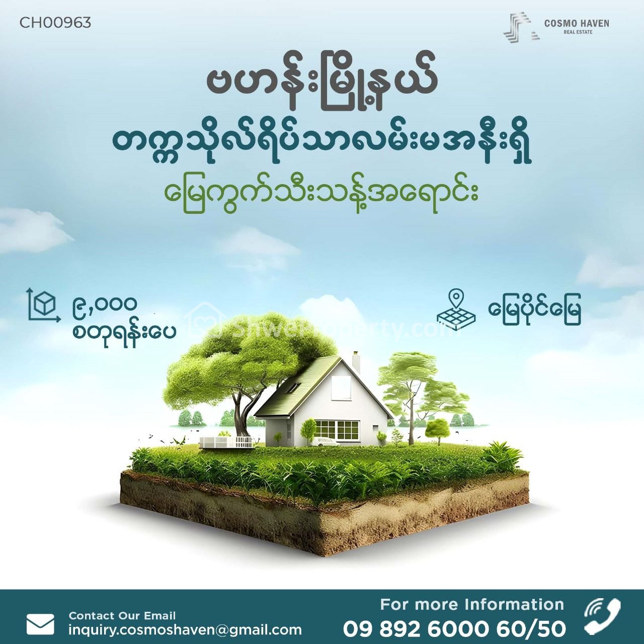 ပိုင်ဆိုင်မှုအတွက် စိတ်ချရသည့် မြေပိုင်မြေ (အမည်ပေါက်) ဖြစ်သောကြောင့် အမြန်ရယူနိုင်ရန်အတွက် Cosmo Haven Real Estate သို့ ဆက်သွယ်နိုင်ပါတယ်ရှင့်😊🌿🌿⚡✨✨✨☘✨✨✨✨