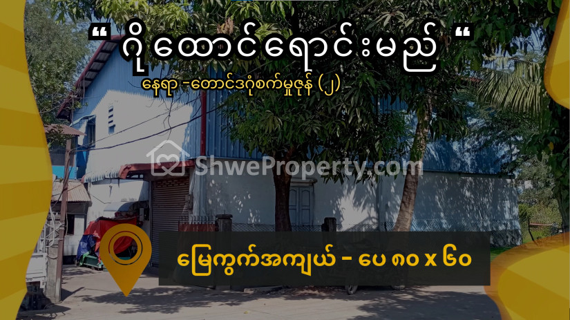 အချက်အချာကျတဲ့ တောင်ဒဂုံစက်မှုဇုန် (၂) အတွင်းက ပေ ၈၀ x ၆၀ ကျယ်တဲ့ နှစ်ကွက်တွဲ မြေကွက်နဲ့ ဂိုဒေါင်ပါ ရောင်းရန်ရှိပါတယ်။
