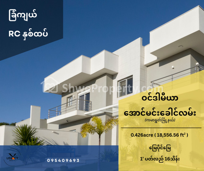 အိမ်ခြံမြေ အမည် : ကမာရွတ်၊ ဝင်ဒါမီယာ၊ ခြံကျယ်အရောင်း၊ RCနှစ်ထပ်အိမ်နှင့် ဂိုထောင်အပါ
