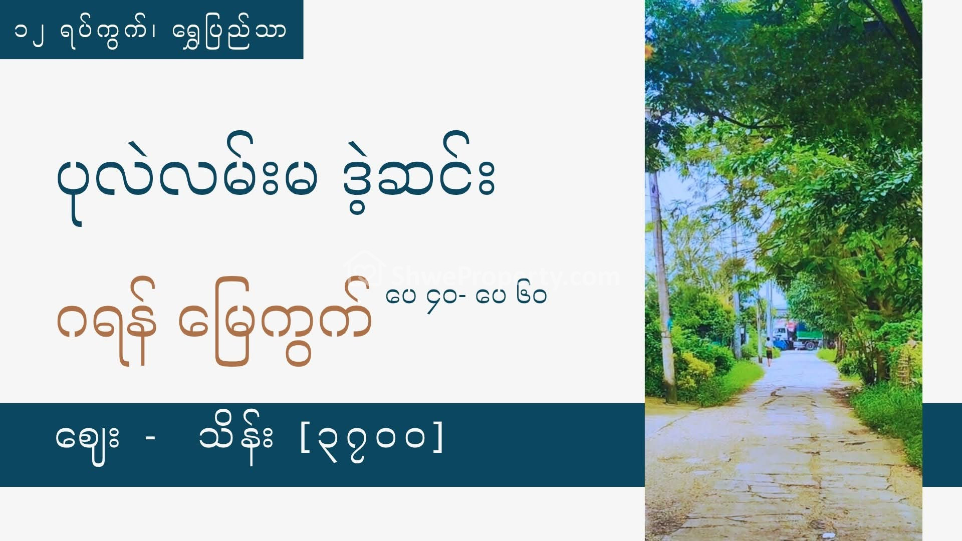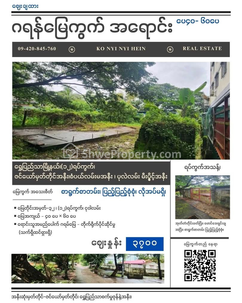 အိမ်ခြံမြေ အမည် : ၄၀-၆၀ ဂရန်မြေကွက်အရောင်း