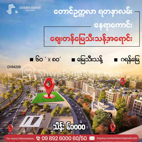လူကြီးမင်းတို့ရဲ့ 💵စီးပွားရေးလုပ်ငန်းအတွက်ပဲရင်းနှီးမြှုပ်နှံမလား မိမိစိတ်ကြိုက်ဒီဇိုင်းဆွဲပြီး နွေးထွေးတဲ့မိသားစုတစ်ခုပဲတည်ထောင်မလား အစရှိသဖြင့် လူကြီးမင်းတို့ရဲ့ စိတ်ကူးအိမ်မက်အမျိုးမျိုးကို အကောင်ထည်ဖော်ပေးနိုင်မယ့် တောင်ဥက္ကလာပမြို့နယ်အတွင်းရှိ အဓိကမိန်းလမ်းမကြီးတစ်ခုဖြစ်တဲ့ ရတနာလမ်းတွင်တည်ရှိပြီး စျေးနှုန်းသင့်တင့် နေရာကောင်း မြေကွယ်ကျယ်ကျယ်အရောင်းလေးကို ကျွန်တော်တို့ Cosmo Have Estate မှ လူကြီးမင်းတို့အတွက် ရွေးချယ်ဖော်ပြပေးလိုက်ပါတယ်ခင်ဗျ 🎗️🎗️💢