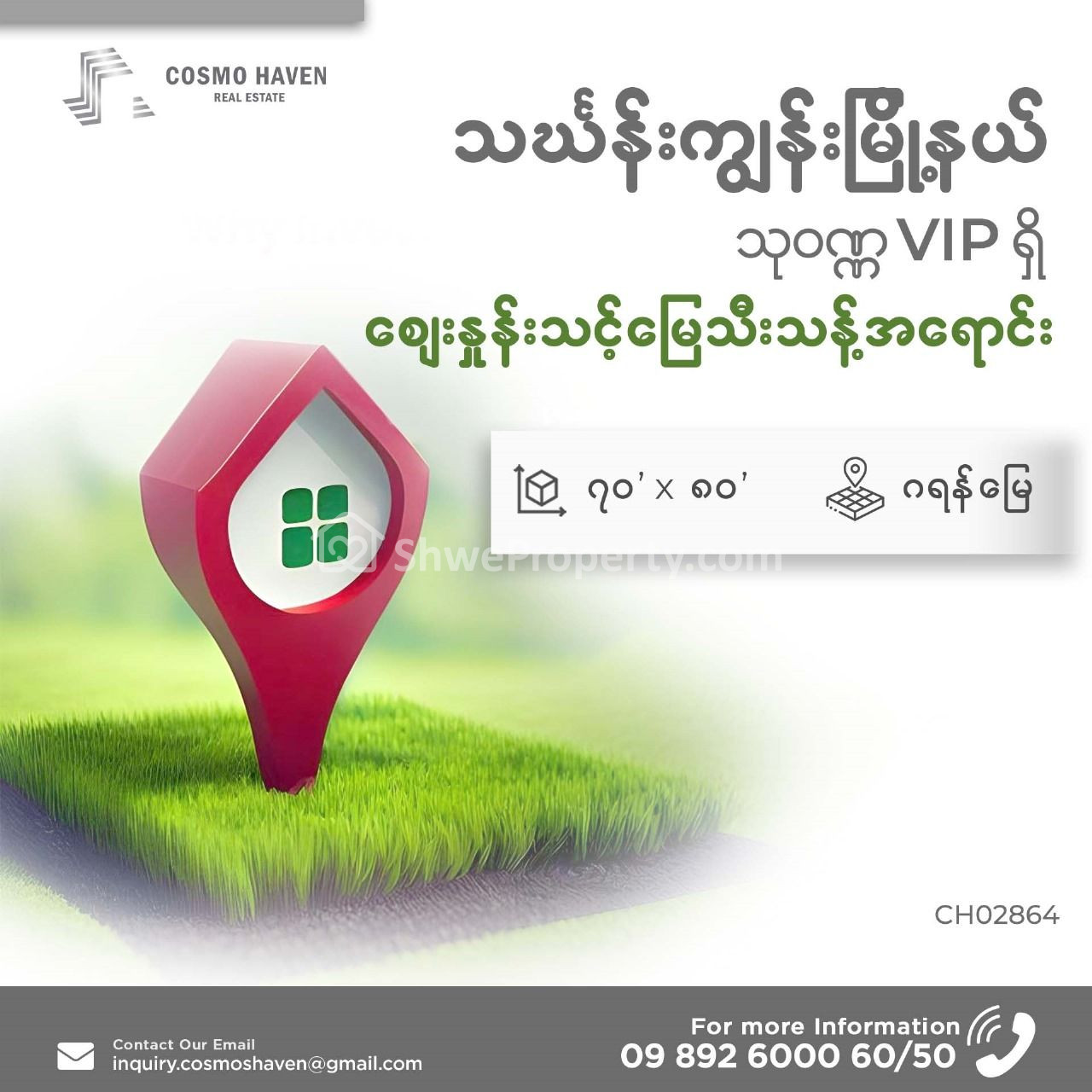 Investment တစ်ခု ပြုလုပ်ရန် ပိုင်ဆိုင်မှု ခိုင်မာသော မြေသီးသန့် ရှာဖွေနေသည့် လူကြီးမင်းများအတွက် 💁♀သင်္ဃန်းကျွန်းမြို့နယ်၊ သုဝဏ္ဏ VIP 1 အတွင်းက စျေးနှုန်းသင့်တင့်သော ဂရန်မြေအမည်ပေါက် 🏜မြေကွက်အရောင်းလေးကို Cosmo Haven မှ ဖော်ပြပေးလိုက်ပါတယ်ရှင့်☺💯⚡✨✨✨☘✨✨✨✨