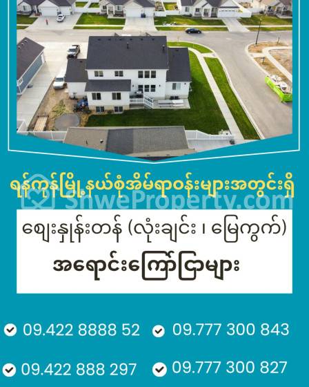အိမ်ခြံမြေ အမည် : ရန်ကုန် မြို့နယ်စုံ အိမ်ရာဝန်းများအတွင်းရှိ (လုံးချင်း၊မြေကွက်) အရောင်းကြော်ငြာများ