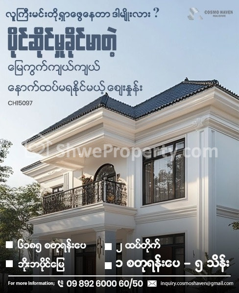 အနာဂတ်မှာ အလားအလာကောင်းတွေနှင့်အတူ မြေဧရိယာကျယ်ကျယ်ပေါ်မှာ ရင်းနှီးမြှုပ်နှံဖို့ရှာဖွေနေတဲ့ လူကြီးမင်းတို့အတွက် အချိန်မိနစ်ပိုင်းအတွင်း လမ်းမတန်းများကို လွယ်ကူစွာသွားလာနိုင်တဲ့ နေရာမျိုးမှာ တည်ရှိတဲ့ စျေးတန် နေရာကောင်းအရောင်းလေးကို ကျွန်တော်တို့ Cosmo Haven Estate နှင့်အတူ အမြန်ဆုံး ဝယ်ယူပိုင်ဆိုင်နိုင်ပါပြီ ခင်ဗျာ