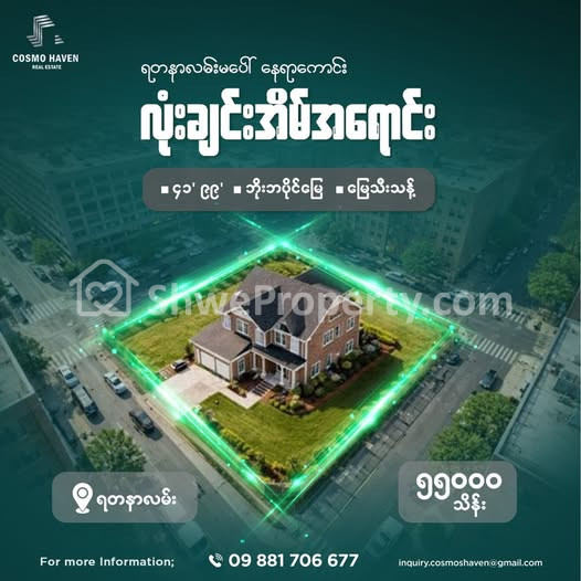အိမ်ခြံမြေ အမည် : သင်္ဃန်းကျွန်းမြို့နယ်ရတနာလမ်းပေါ်ရှိ မြေသီးသန့်နေရာကောင်းအရောင်း/Land Only for Sales Thingangyun Township in Yangon/09892600050,09892600060