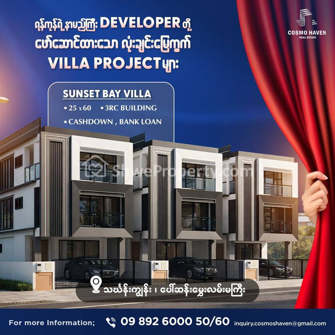 ✨ Cosmo Haven Real Estate မှ နာမည်ကြီး Developer များ တာဝန်ယူ တည်ဆောက်ထားတဲ့၊ ယုံကြည်စိတ်ချရမှု အပြည့်ရှိတဲ့ နာမည်ကြီး Villa Project ပေါင်းများစွာကို တစ်နေရာတည်းမှာ ရွေးချယ်ဝယ်ယူနိုင်အောင် တင်ဆက်ပေးလိုက်ပါတယ် ✨.........