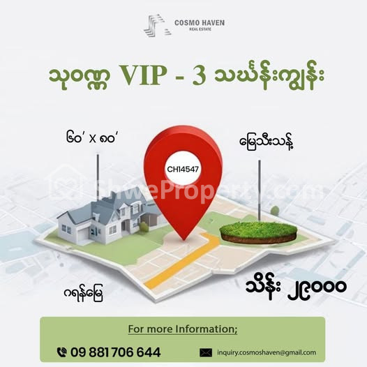 အိမ်ခြံမြေ အမည် : သုဝဏ္ဏ VIP3,သင်္ဃန်းကျွန်းမြို့နယ်အတွင်းရှိ နေရာကောင်းဈေးတန် မြေကွက်ကျယ်အရောင်း/Land Only for Sales Thingangyun Township in Yangon/09892600050,09892600060