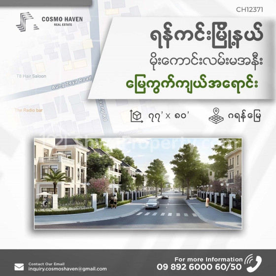 အိမ်ခြံမြေ အမည် : Land Only for Sales Yankin Township in Yangon / ရန်ကင်းမြို့နယ် မိုးကောင်းလမ်းမအနီး မြေကွက်သီးသန့်အရောင်း
