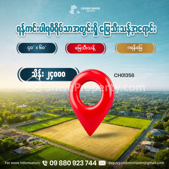 အိမ်ခြံမြေ အမည် : ရန်ကင်းပါရမီရိပ်သာအတွင်းရှိ မြေသီးသန့် အရောင်း/Land Only for Sales Yankin Township in Yangon/09892600050,09892600060