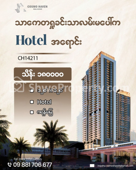 အိမ်ခြံမြေ အမည် : စီးပွားရေးလုပ်ရန်အတွက်နေရာကောင်းလမ်းမတန်းဟိုတယ်အရောင်း/Hotel for Sales Tharketa Township in Yangon