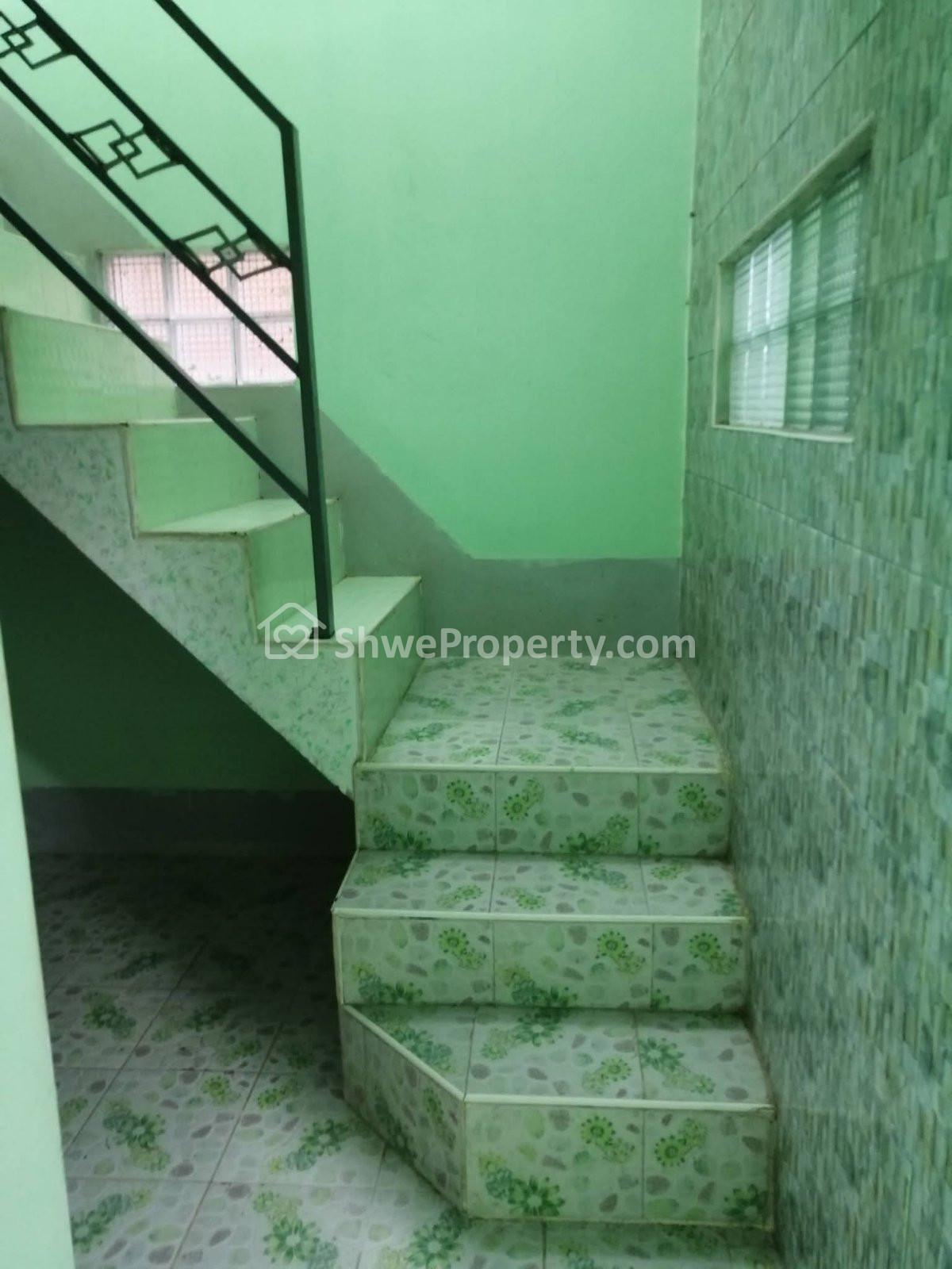 အပေါ်ထပ်အောက်ထပ်ကြွေပြားအပြည့်ခင်း အိပ်ခန်းအောက်တစ်ခန်း အပေါ်ထပ်တစ်ခန်းဖွဲ့ပြီး