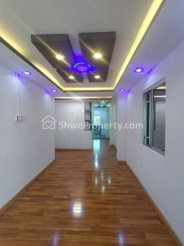 #အလယ်ခန်းမှာကိုရီးယားပါကေးအထူသားခင်းထားပြီးအိပ်ခန်းတခန်းဖွဲ့ထား။
