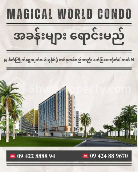အိမ်ခြံမြေ အမည် : ရန်ကုန်မြို့လယ်ခေါင်မှာ Luxury Condo အရောင်းခန်းရှာနေသည့် မိတ်ဆွေများအတွက် Magical World Luxury Condo မှ အရောင်းခန်း