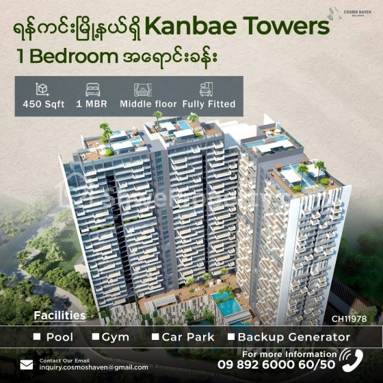 အိမ်ခြံမြေ အမည် : ရန်ကင်းမြို့နယ်ရှိ Kanbae Tower 1 Bedroom အရောင်းခန်း / Kanbae Tower 1 Bedroom for Sales Yankin Township in Yangon
