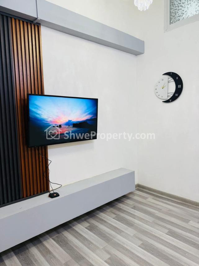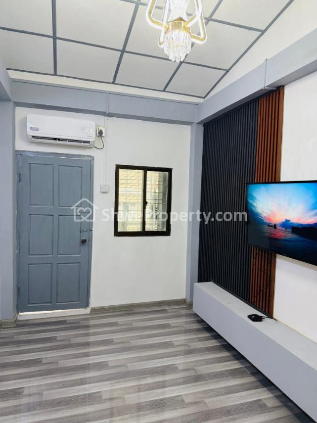 အိပ်ခန်း ၂ ခန်း ၊ Aircon 1 လုံး ( BRAND NEW ) ၊ TV 1 လုံး ၊ ပါကေးကြွေပြား ၊