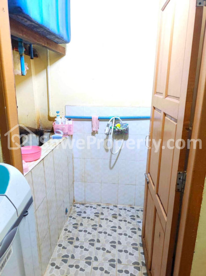 ကြွေပြားအပြည့် ခင်းပြီး သား တစ်အိမ်လုံး ရေချိုး ခန်းအိမ်သာ အပါ အပြီး အစီး ။