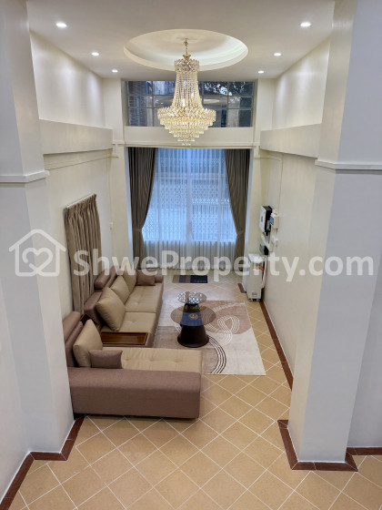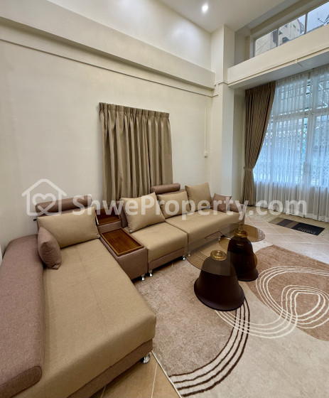 👉ဧည့်ခန်းတွင် ဆက်တီခုံ၊ ကော်ဖီစားပွဲ၊ အလှကော်ဇော ပါပြီး