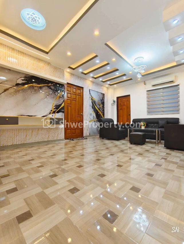 Master Bedroom(1)/Single Bedroom1 /Aircon 1လုံးပါ /ဆိုဖာတစ်စုံ/ ပန်ချီကား/ TV စင်/100%အပြောင် ကိုရီးယားပါကေး