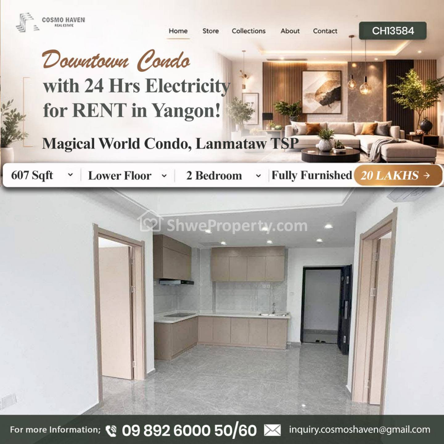 အိပ်ခန်း ၂ ခန်း ရေချိုးခန်း ၂ ခန်း ပါ ရန်ကုန်တိုင်းဒေသကြီး လမ်းမတော် မြို့နယ်ရှိ ငှားရန်ရှိသော ကွန်ဒို