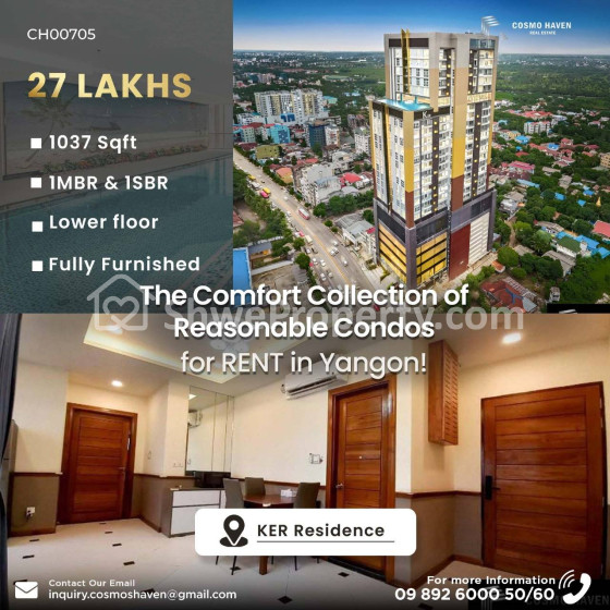 အိမ်ခြံမြေ အမည် : ရန်ကုန်မြို့နယ်ရှိမြို့နယ်စုံကွန်ဒိုအငှားများ/KER Residence Condominium for Rent Mayangone Township in Yangon