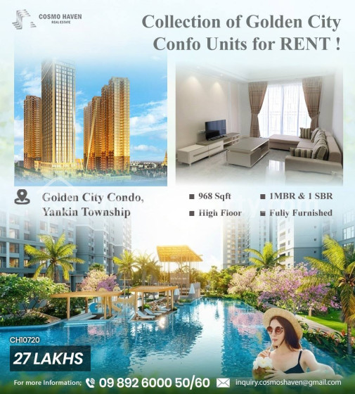အိမ်ခြံမြေ အမည် : ရန်ကင်းမြို့နယ်ရှိGolden City Condominiumအခန်းအငှားများ/Golden City Condominium for Rent Yankin Township in Yangon/09892600050,09892600060