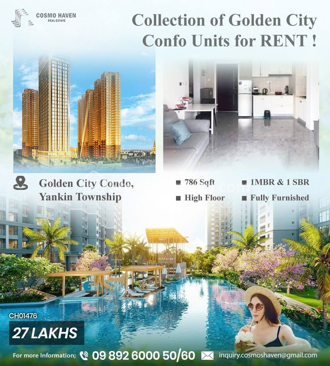 အိမ်ခြံမြေ အမည် : ရန်ကင်းမြို့နယ်ရှိGolden City Condominiumအခန်းအငှားများ/Golden City Condominium for Rent Yankin Township in Yangon/09892600050,09892600060
