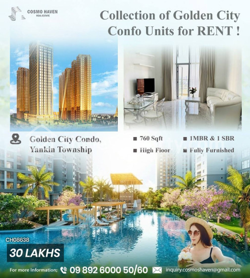 အိမ်ခြံမြေ အမည် : ရန်ကင်းမြို့နယ်ရှိGolden City Condominiumအခန်းအငှားများ/Golden City Condominium for Rent Yankin Township in Yangon/09892600050,09892600060