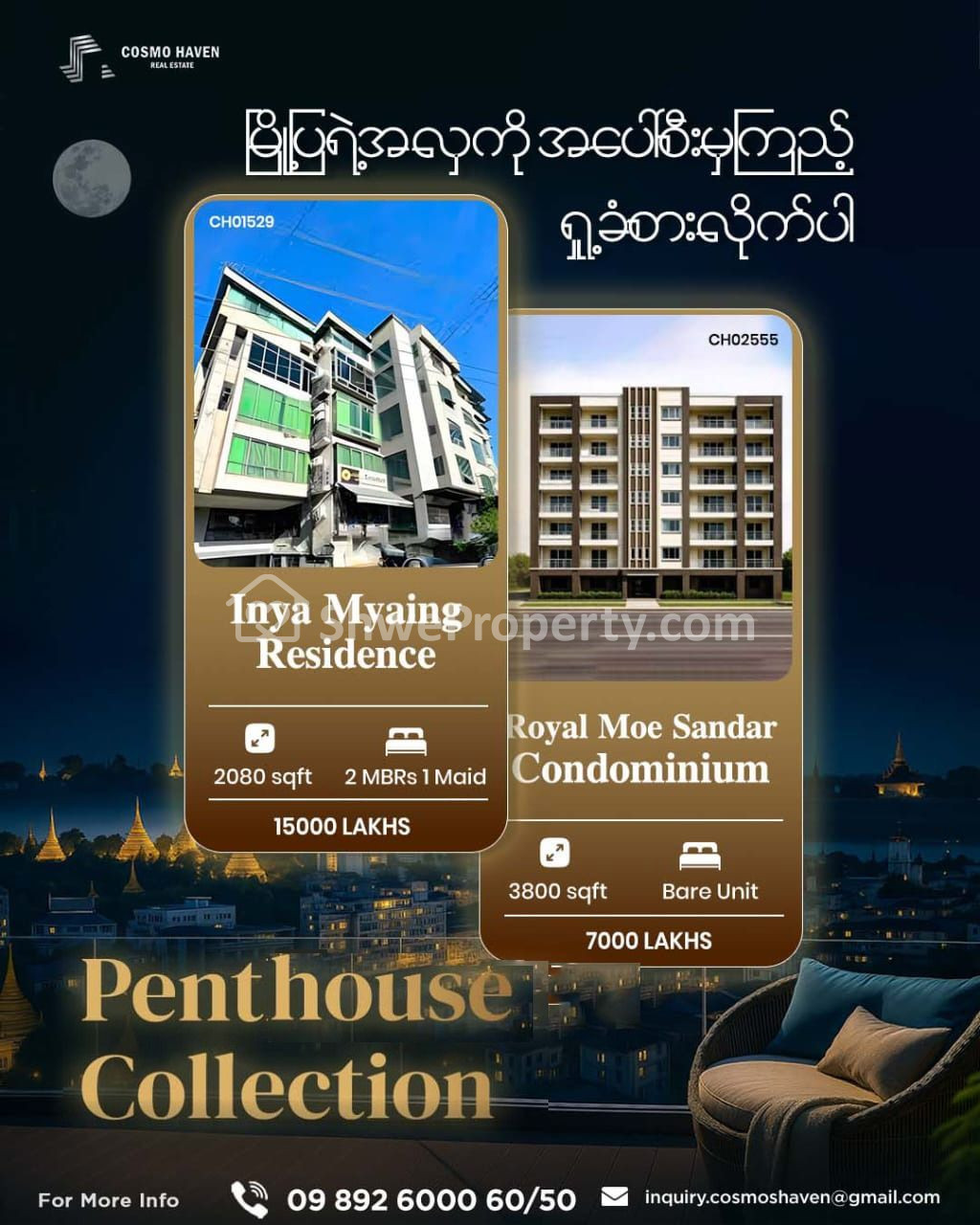 အိမ်ခြံမြေ အမည် : ရန်ကုန်မြို့ရဲ့ မြို့နယ်စုံက Penthouseအရောင်းများ/Penthouse Collection for Sales in Yangon/09892600050,09892600060