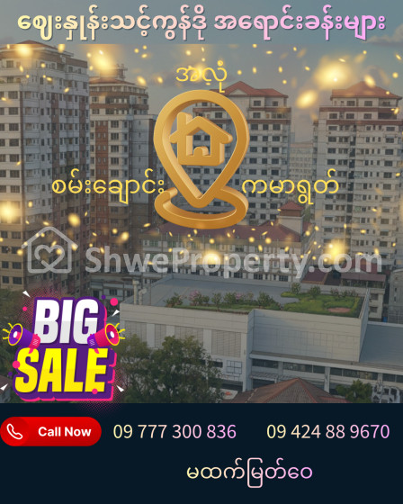 အိမ်ခြံမြေ အမည် : ကမာရွတ်မြို့နယ်ရှိ ဈေးနှုန်းသင့်ကွန်ဒို အရောင်းခန်းများ