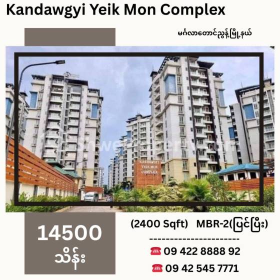 အိမ်ခြံမြေ အမည် : မင်္ဂလာတောင်ညွန့်မြို့နယ်မှာ လုံခြုံကျယ်၀န်းသော အိမ်ရာ၀န်းနှင့် နေထိုင်လိုသော လူကြီးမင်းများအတွက် ကန်တော်ကြီးရိပ်မွန် Complex မှ ( Sqft ) ကျယ်ပြင်ဆင်ပြီး အခန်းရောင်းမည်