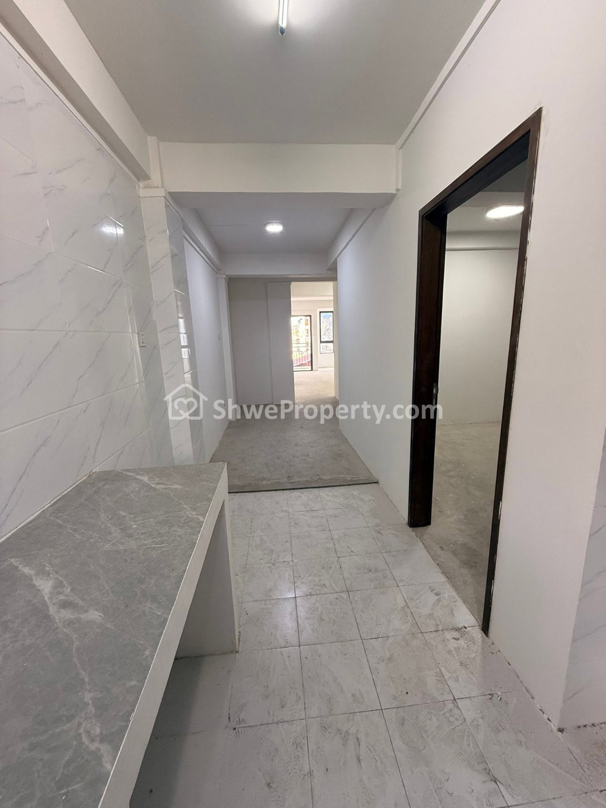 ကြွေပြား၊ရေချိုးခန်းအိမ်သာမီးဖိုခန်း-နံရံအပြည့်ကပ်ပြီး၊ဓါတ်လှေခါးရှေ့ကြမ်းခင်းပြီး၊