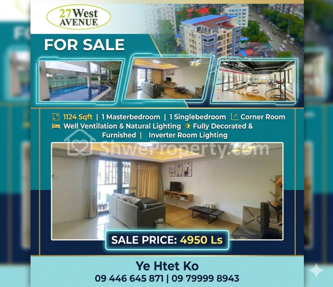 🏢 အရောင်းထွက်တာရှားတဲ့ 27 West Avenue Condo (Fully Furnished) အခန်း ရောင်းမည်