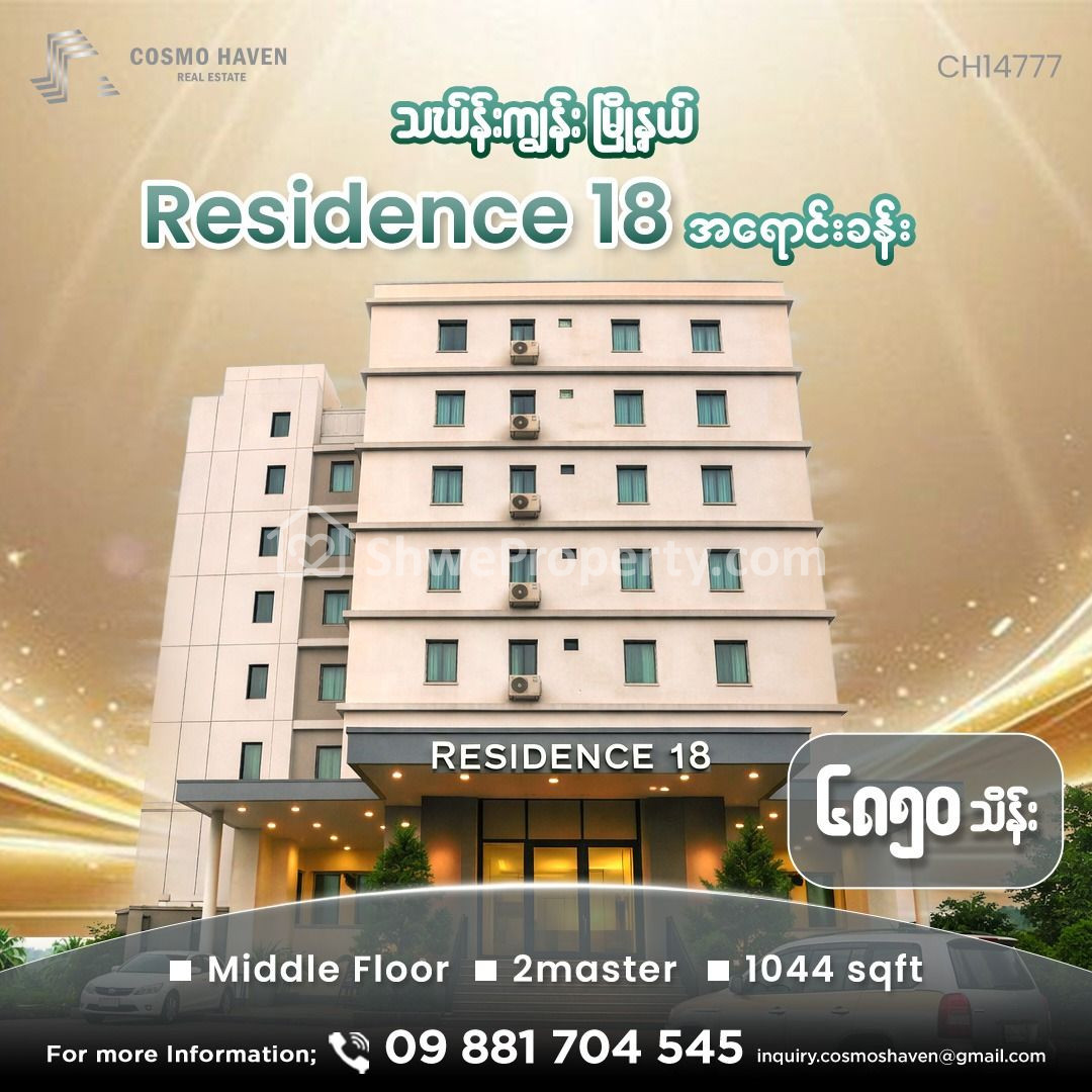 အိမ်ခြံမြေ အမည် : သင်္ကန်းကျွန်းမြို့နယ်ရှိResidence 18 Condominiumအရောင်း/Residence 18 Condominium For Sales Thingangyun Township In Yangon/09892600050,09892600060