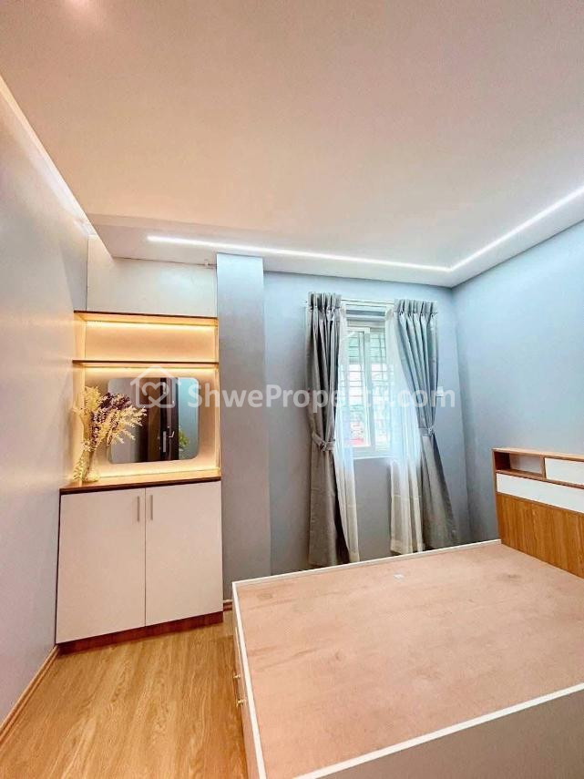 #Master_Bedroom တွင် King Size ကုတင် နံရံကပ်ဘီရို ( ၅' ၇' ) အသစ် တစ်လုံး၊ မှန်တင်ခုံ၊ အဲကွန်း တစ်လုံးပါပါတယ်။