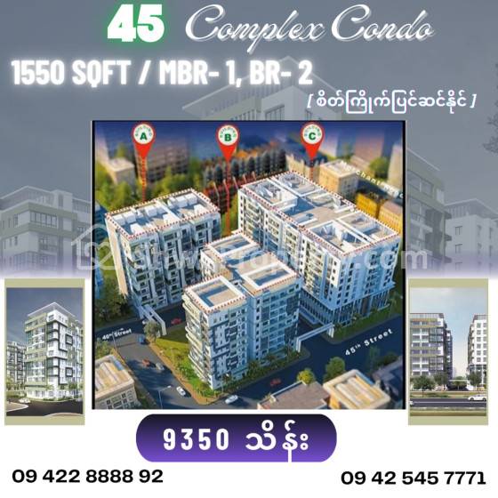 အိမ်ခြံမြေ အမည် : ဗိုလ်တစ်ထောင်မြို့ယ်မှ ကားပါကင်ပါဝင်ပြီး မိမိစိတ်ကြိုက်ပြင်ဆင်နိုင်မည့် 45 Complex Condoမှ အရောင်းခန်း