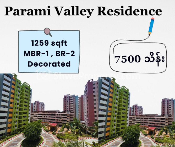 အိမ်ခြံမြေ အမည် : လှိုင်မြို့နယ် ၊ Parami Valley Residence ( 1259 sqft ) For Sale