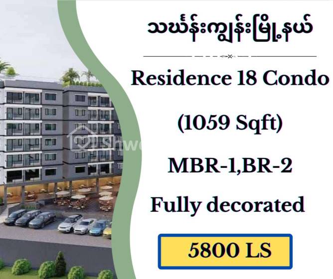 အိမ်ခြံမြေ အမည် : သင်္ဃန်းကျွန်းမြို့နယ် “Residence 18”Luxury Condo အရောင်း