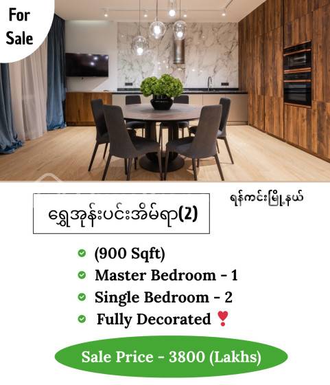 အိပ်ခန်း ၃ ခန်း ရေချိုးခန်း ၂ ခန်း ပါ ရန်ကုန်တိုင်းဒေသကြီး ရန်ကင်း မြို့နယ်ရှိ ရောင်းရန်ရှိသော ကွန်ဒို