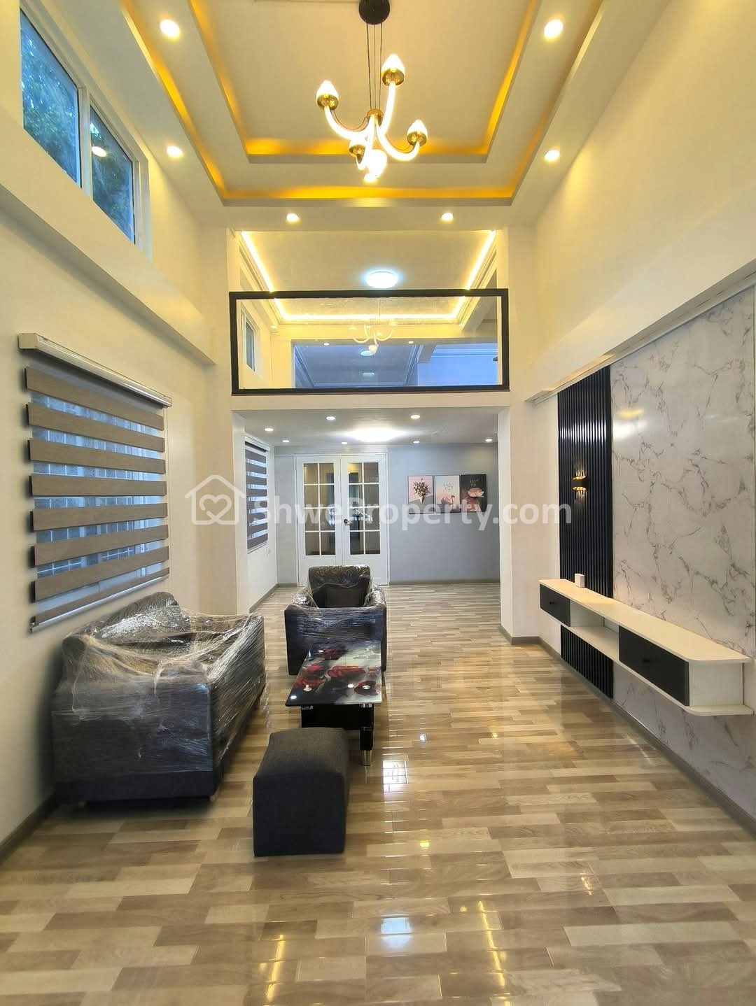 ဘာဂျာတံခါးများတပ်ပြီး၊မျက်နှာကျတ်မီးအလှဆင်ပြီး အသင့်နေအခန်းကျယ်ပါ။