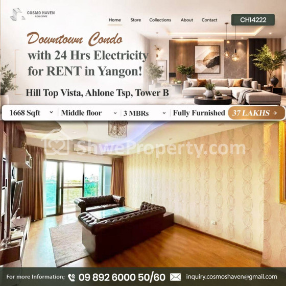 We are serving not only the more high-end condominiums for rent or sales in this area but also around Yangon, don’t be hesitate to call for the most efficient One Stop services (24 Hours) .