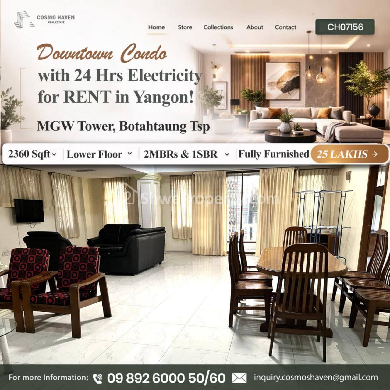 We are serving not only the more high-end condominiums for rent or sales in this area but also around Yangon, don’t be hesitate to call for the most efficient One Stop services (24 Hours) .