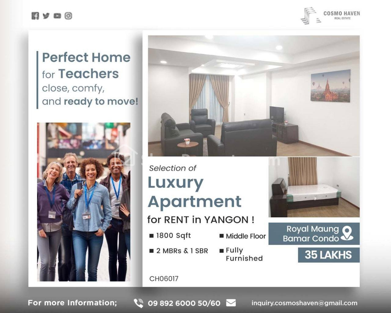 အိမ်ခြံမြေ အမည် : လှိုင်မြို့နယ် Royal Maung Bamar Condominium အငှား / Luxury Condominium for Rent Hlaing Township in Yangon
