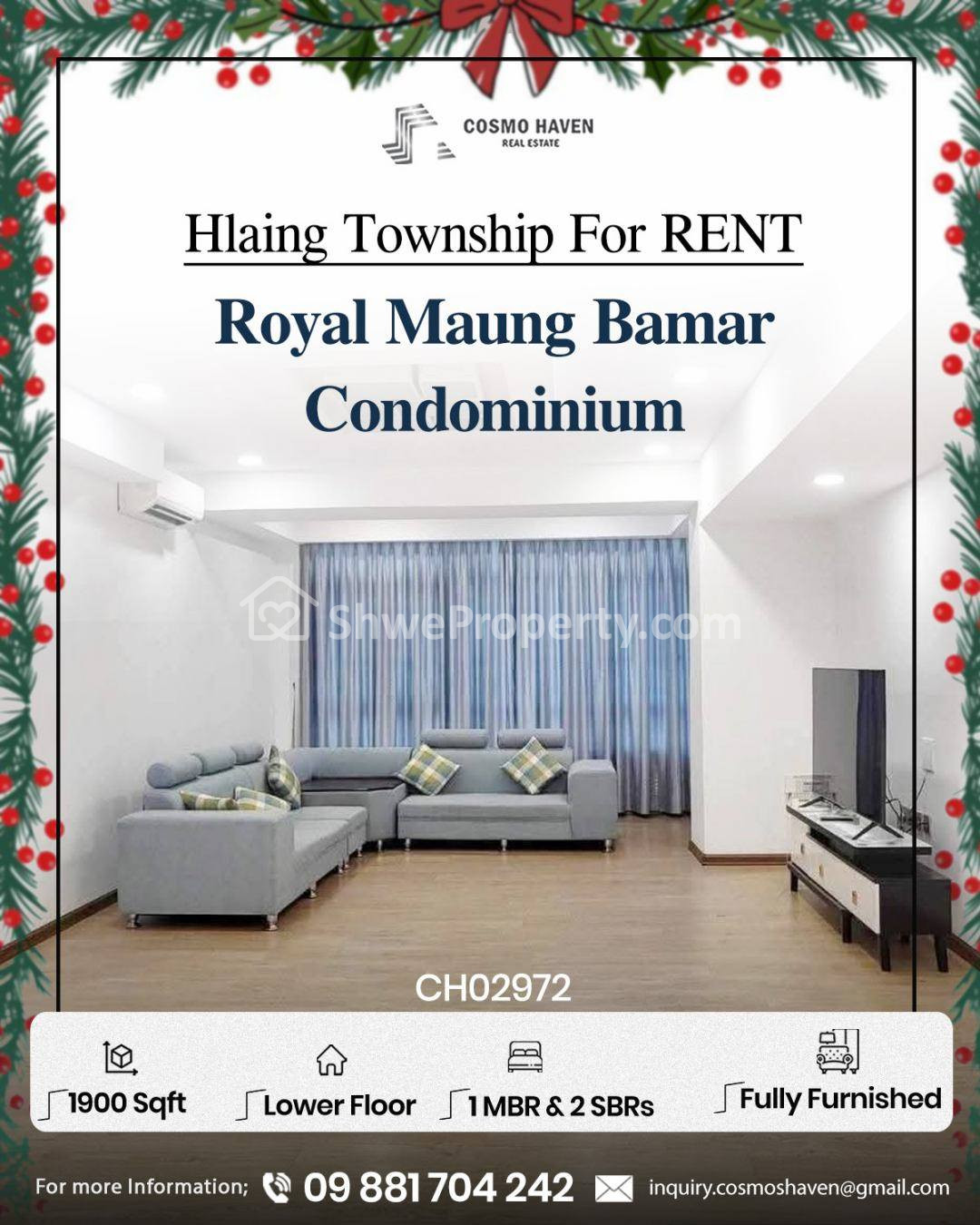 အိမ်ခြံမြေ အမည် : လှိုင်မြို့နယ်ရှိRoyal Maung Bamar Condominiumအငှား/Royal Maung Bamar Condominium For Rent Hlaing Township In Yangon/09892600050,09892600060