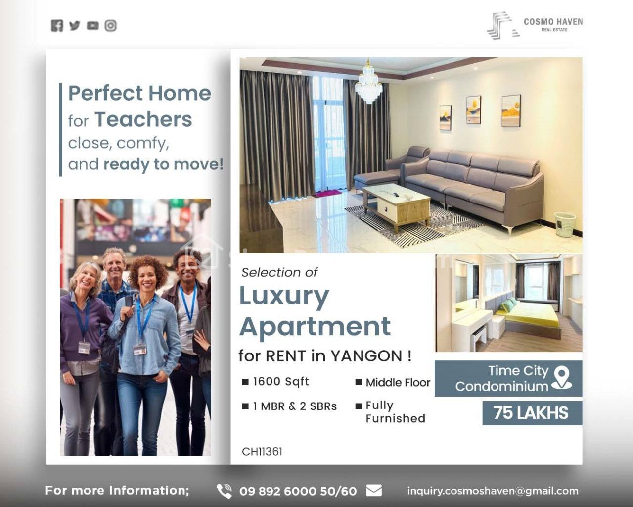 အိမ်ခြံမြေ အမည် : ကမာရွတ်မြို့နယ် Time City Condominium အငှား / Luxury Condominium for Rent Kamayut Township in Yangon