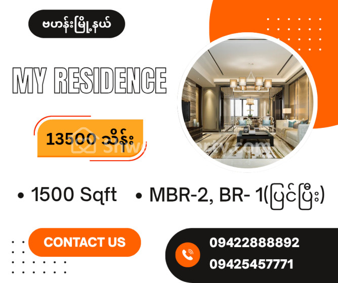 အိမ်ခြံမြေ အမည် : ဗဟန်းမြို့နယ် ၊ My Residence (1500 Sqft)For Sale