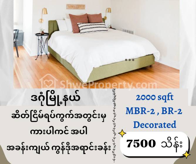 အိမ်ခြံမြေ အမည် : ဒဂုံမြို့နယ်မှ ဆိတိငြိမ်ရပ်ကွက်အတွင်းမှာရှိတဲ့ ကားပါကင်အပါ အခန်းကျယ် ကွန်ဒိုအရောင်း