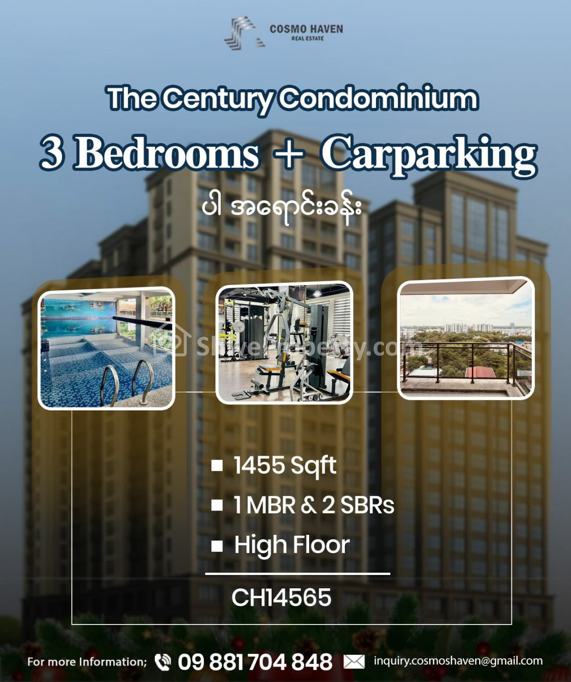 📍ရန်ကုန်မြို့ရဲ့ စည်ကားတဲ့ လှိုင်မြို့နယ်၊ အင်းစိန်လမ်းမကြီးပေါ်ကThe Century Condominium မှာ အိမ်ခန်း ၃ခန်း ပါ၀င်သော အခန်းကျယ်အရောင်း ရှိပါသည်